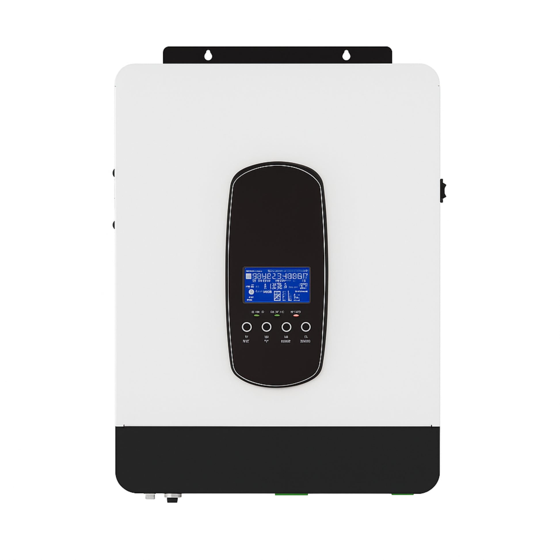 Features: Hybrid operation, pure sine wave output, smart charging profiles, LCD monitoring screen